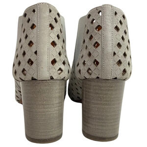 Aquatalia Shari Laser Cut Booties Women Size 9 Light Grey Leather Suede Heel EUC