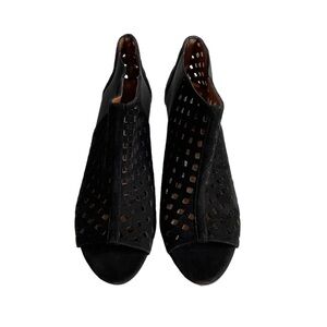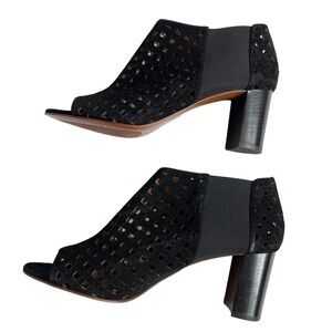 Aquatalia Shari Perforated Open Toe Suede Boots Size 10 Black Block Heel