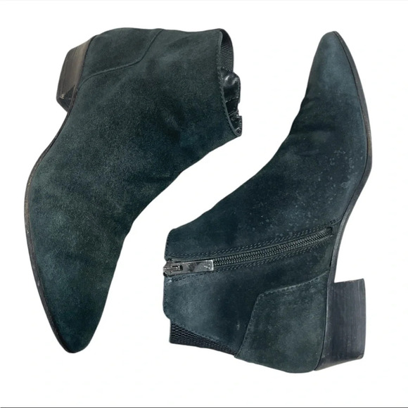 Aquatalia Side Zip Franca Black Suede Pointed Toe Ankle Booties Size 8.5