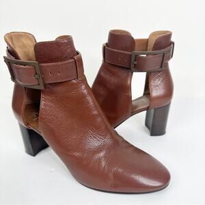 Aquatalia Size 7.5 Brown Leather Cut Out Heeled Ankle Booties