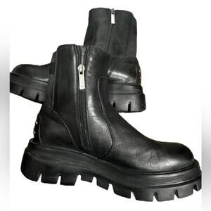 Aquatalia Skyler Black Leather Water-Resistant Lug Sole Platform Boot Size 10