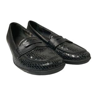 Aquatalia Snakeskin Embossed Leather Penny Loafers Driving Mocs Black Size 6