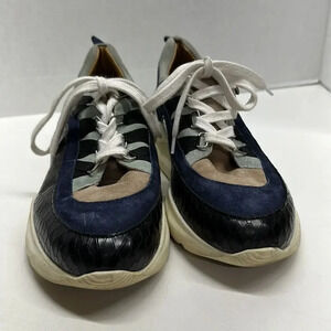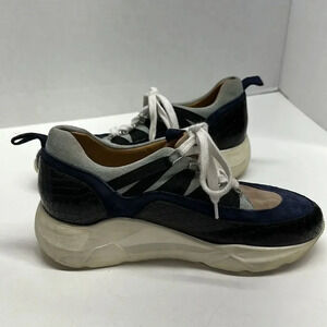 Aquatalia Sneakers Shoes Lace Up Athletic Designer White Blue Snake Skin 7.5