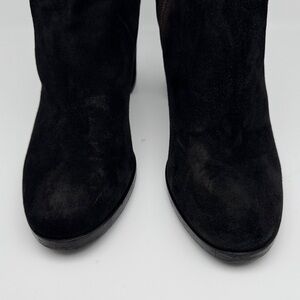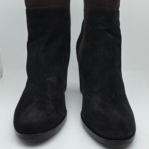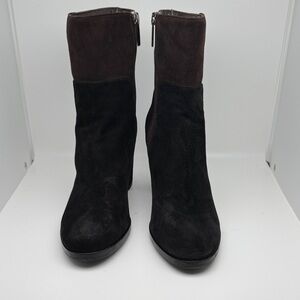 Aquatalia Suede Brown Black Ankle Block Heel Zipper Closure Bootie Size 7