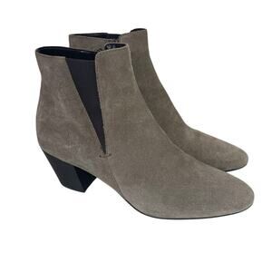 Aquatalia Suede Heeled Zip Ankle Boots Taupe Made in Italy Size US 10
