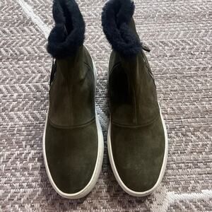 Aquatalia Suede Shearling- Herb / Black Women’s Ankle Boots Sz 9.5M