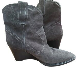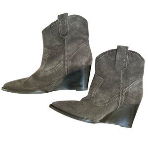 Aquatalia Suede Wedge Cowboy Ankle Boots Booties Gray Made In Italy Size 7.5