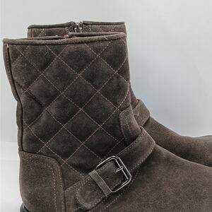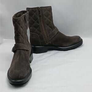 Aquatalia Suede Western Ankle Boots Women 7M Gray Quilted Gorpcore Hiking Grunge