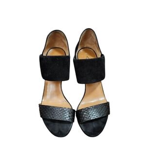 Aquatalia Suzanne Sneak print and Suede Black open toe shoes Size 6.5