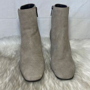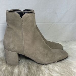 Aquatalia Tan Suede Side Zip Chunk Heel Booties Sz 9