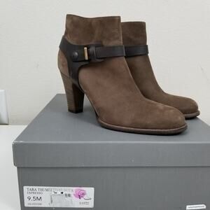 Aquatalia Tara Espresso Brown Numbuk Leather Bootie Sz 9.5 NWB $495