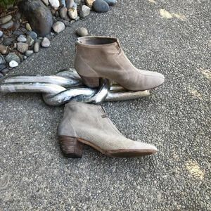 Women’s taupe tan perforated suede leather ankle boots, booties