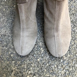 Aquatalia Taupe Tan Suede Leather Perforated Ankle Boots Booties Back Zip 9