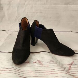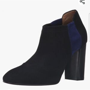 Elegant and sophisticated, the Vale ankle boot will have your onlookers do a double take. Stretch suede leather upper. Stitched paneling creates texture. Plain round toe. Fabric sock lining and padded insole. Stacked block heel. Leather and rubber sole. Made in Italy.