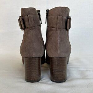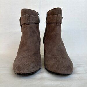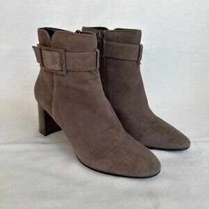 Aquatalia Vanie Taupe Brown Weatherproof Suede Heeled Ankle Boots