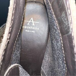 Lace Up Bootie with Waterproof Suede Upper with Contrasting Top Stitch Welt. Crepe Rubber 4” Wedge Heel with 1” Platform. Chukka Style with a Cushioned Fabric Lining. Beautiful Dark Taupe in Very Good Condition 🚭
