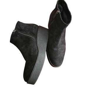 Aquatalia Vina black suede ankle booties. platform wedge. Zipper.