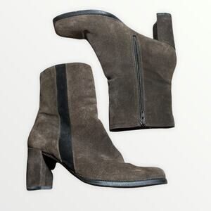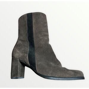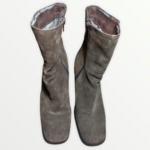 Gorgeous suede boot with leather lining. Boot appears to be from the 90’s. Zips to mid calf. Very chic!