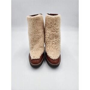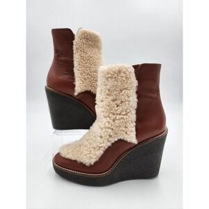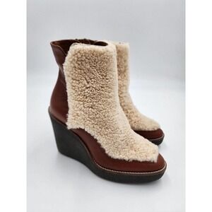 Aquatalia Violett Leather Shearling Wedge Ankle Bootie Bro…