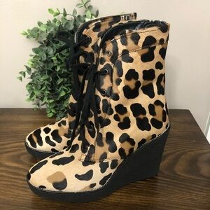 Aquatalia Viviann Leopard Lace Up Wedge Booties