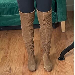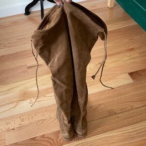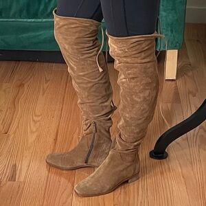Gorgeous walnut brown colored suede over the knee thigh high waterproof boots from Aquatalia.