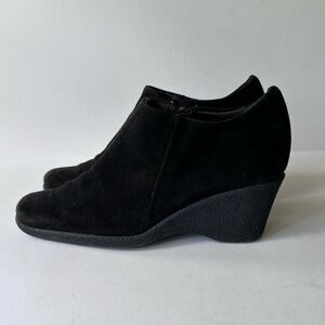 Aquatalia Weatherproof Black Suede Ankle Shoe Boot Wedges Size 7