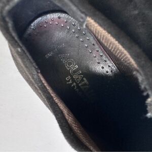 Weatherproof black suede ankle shoe boots by Aquatalia with a wedge heel. Size 7. Gently used. Made in Italy. See photos for details.