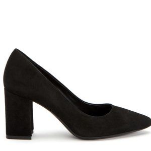 Elegant almond-toe pump in dress suede with covered heel and signature AQ24/7 sole for all-day comfort.