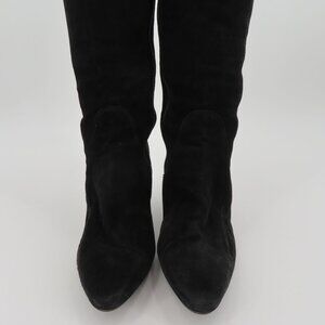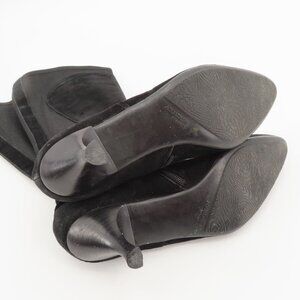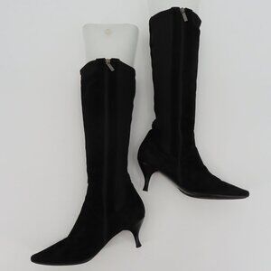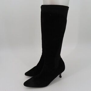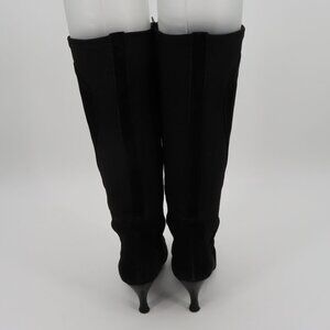 Aquatalia Women 8.5 Black Suede Knit Stretch Kitten Heel Boots Pointed Toe Zip
