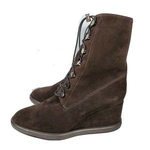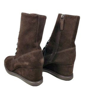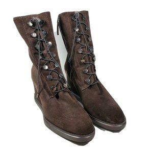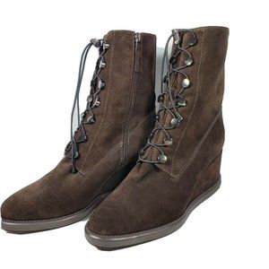 Aquatalia Women Boots Campbell ankle Brown suede wedge heel lace up side zipper