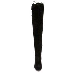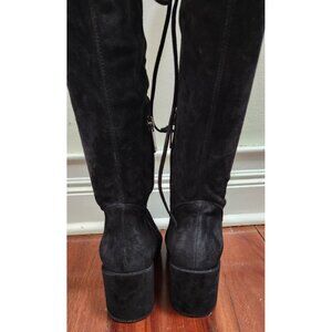 Aquatalia Black Suede Over-the-Knee Boots 6 | Made in Italy | Block Heel Stretch Tie Back | Luxury Designer