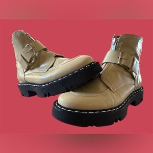 Aquatalia Women’s Ankle Boots Beige Patent Leather 9.5 Made in Italy EUC