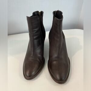 Aquatalia Women’s Brown All Leather Almond Toe Block Heel Zip up Ankle Boots 8