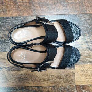Aquatalia Women's Italy Black Leather Strappy Low Heel Sandals Size 7