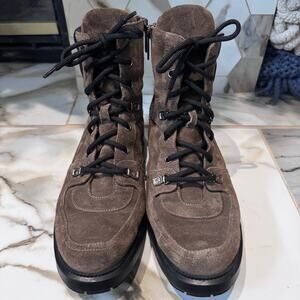 Aquatalia Women’s Lene Weatherproof Taupe Suede Combat Boots Size 9.5 Lug Soles