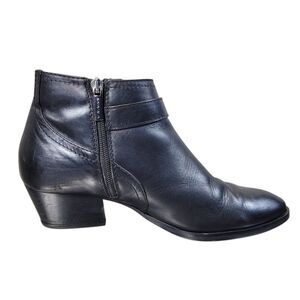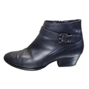 Aquatalia Womens Sz 9 Black Leather Zip and Buckle Ankle Boots Made in Italy