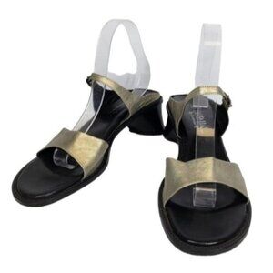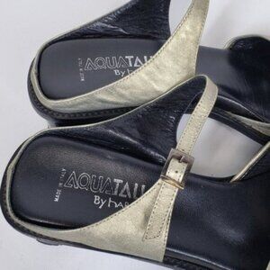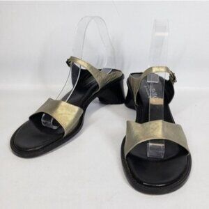 Aquatalia by Harvin K Slip On Heeled Sandal Mules Gold Bronze Size 9