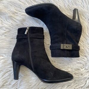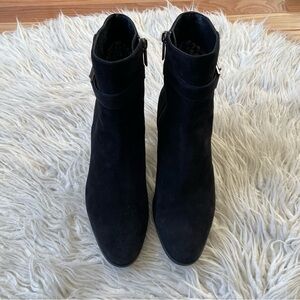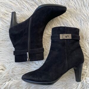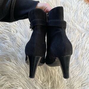 Aquatalia by Marvin K Black Heeled Danele Buckled Suede Ankle Boots EUC Size 9