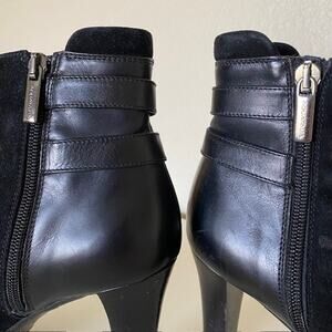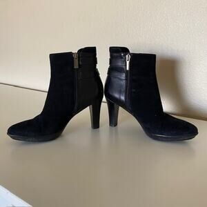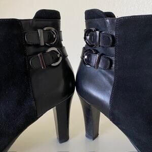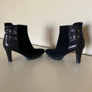 Aquatalia by Marvin K Black Leather Suede Ankle Boots Buckle 3" Heel Women's 6B