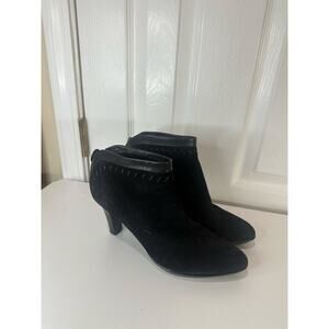 Aquatalia by Marvin K Black Suede Leather Whipstitch High Heel Booties Sz 10