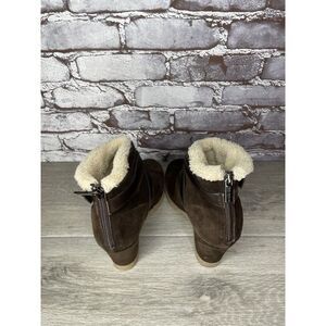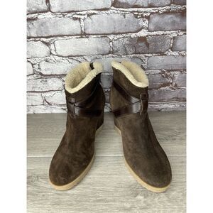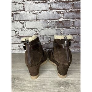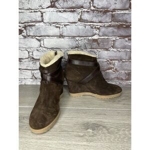 Aquatalia Brown Suede Faux Fur Strap Ankle Wedge Booties Women’s Sz 10M US/41EU