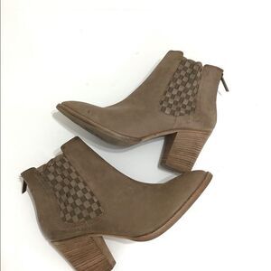 Aquatalia Brown Frannie Western Style Stacked Heel Ankle Boots Sz 10