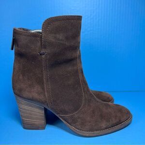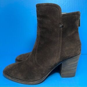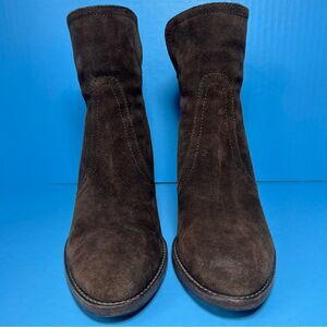 Aquatalia Farah Suede Heeled Booties in Mud Rub Suede Brown 7.5