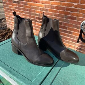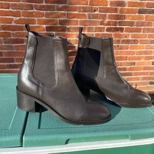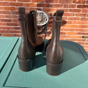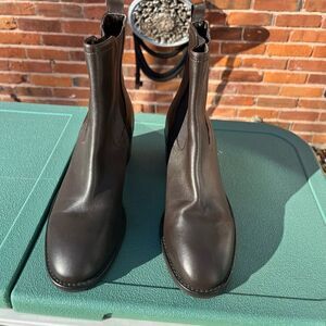 Stunning aquatalia fin leather boots. Never been worn, with sole stickers attached. Pull on style. Weatherproof. Genuine Italian leather. Super dark brown color.