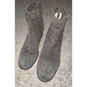 Aquatalia Taylor Dark Grey Textured Suede Leather Ankle Heel Booties Boots 7.5