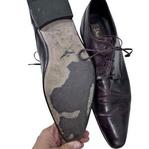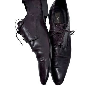 Soft leather pointed toe oxford lace up dress shoe. Size 45. These aree in great condition Darion with slight scuffing on right toe. See photo.
