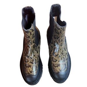 Aquatalita Holly Ankle Boot in Olive Snake/Black Elastic NwOB Size 7 1/2