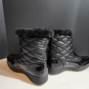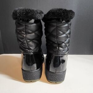 Aquatherm Santana Canada black winter snow boots. Size 10 medium. Mid calf height with faux fur trim & lining. Waterproof with 2.25" heels. Slip resistant outsoles. NEVER WORN !