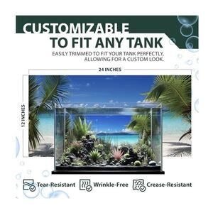 The Aquatic Creations Aquarium Background Beach Scene is a 24" x 12" synthetic decoration designed for all water types. Made in China, this multicolor background adds a realistic touch to your aquarium, creating a calming beach scene for your fish to enjoy. Enhance the beauty of your underwater environment with this high-quality and visually appealing backdrop from Aquatic Creations.