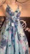 Aquatic Print Maxi Dress V Neck Spaghetti Straps Belted Flowy Beach Vacation